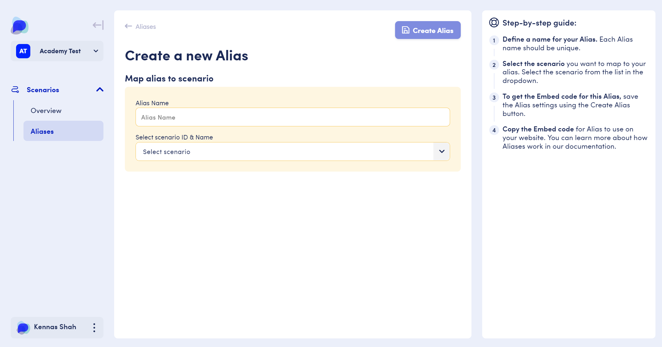 To create an Alias you need an Alias name and a scenario.&#x20;